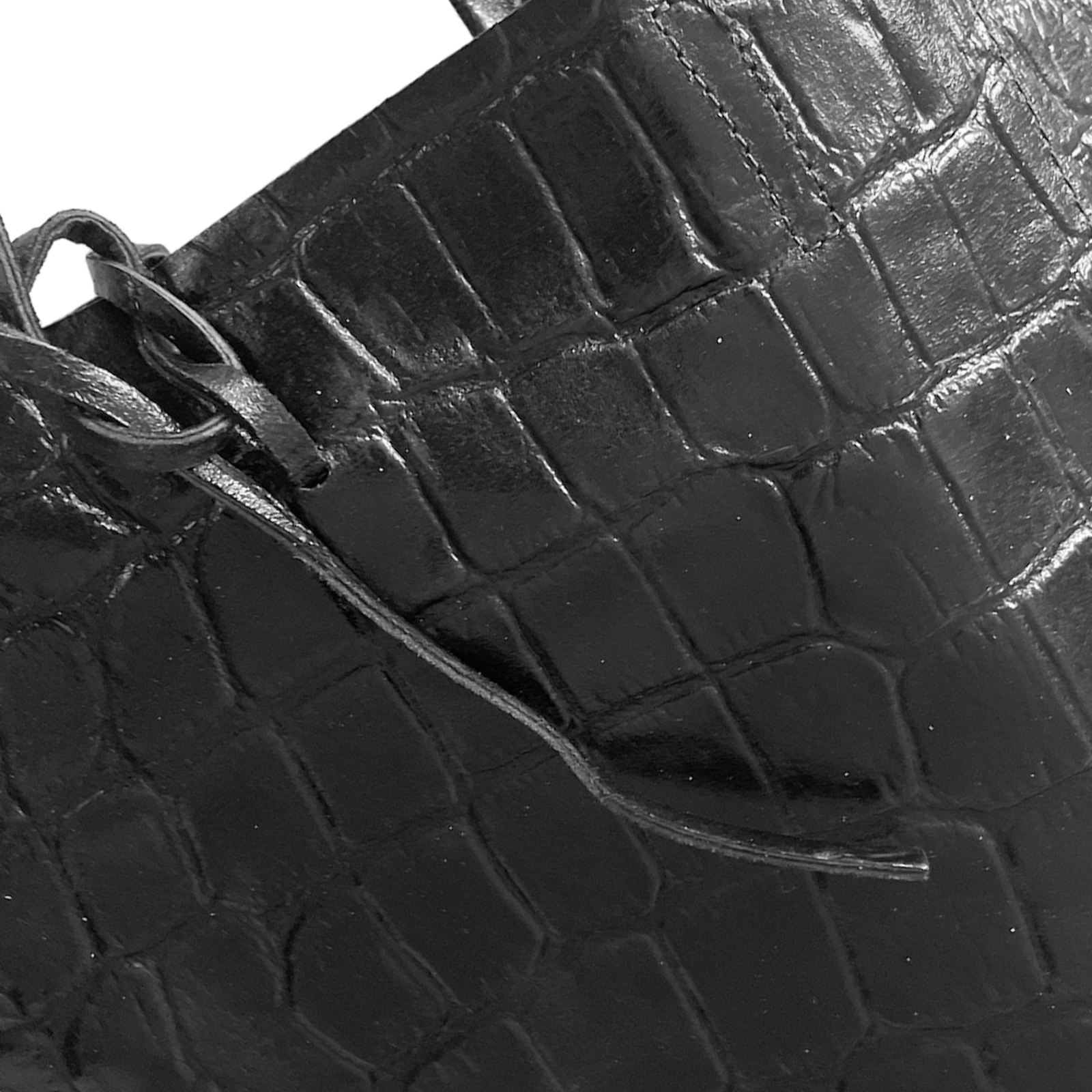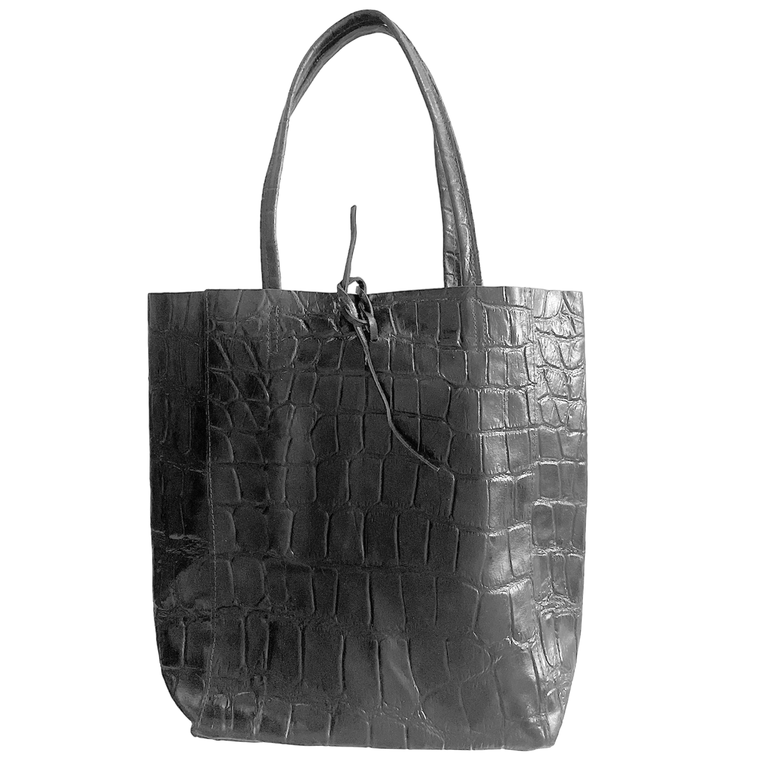 Leder Shopper mit Innentasche Kroko Schwarz
