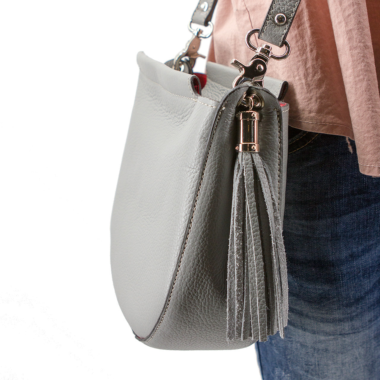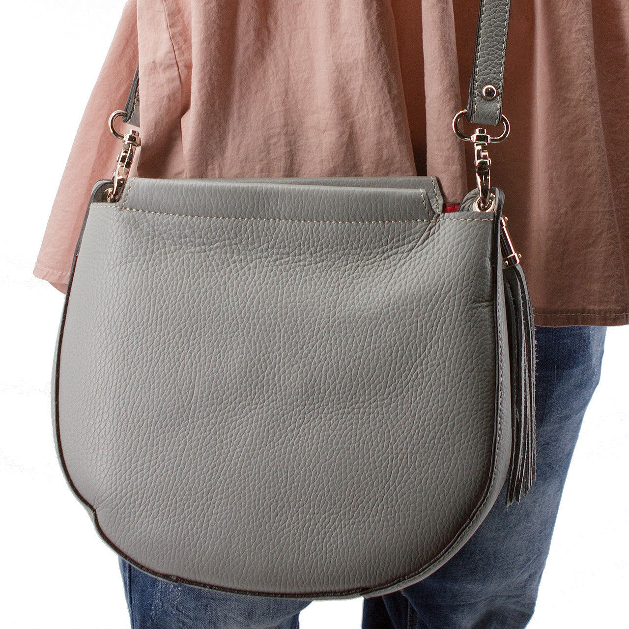 Umhängetasche in D Form mit Quaste Grau