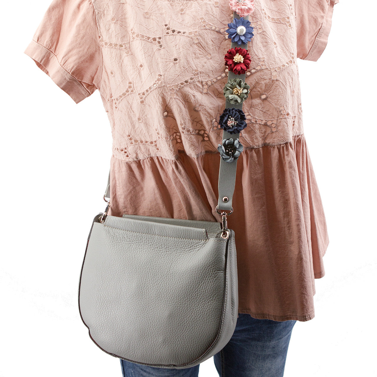 Modische Leder Tasche in D Form mit Quaste. Optional mit Blüten / Blumen Ledertragegurt - Siehe dazu die Bundle Angebote - Ein Großes Innenfach und eine seitliche Innentasche mit Reißverschluss, Tragegurt, Breite ca. 25 cm und Höhe ca. 23cm Tiefe ca. 9cm, Innenfutter 100% Polyester,